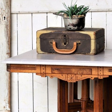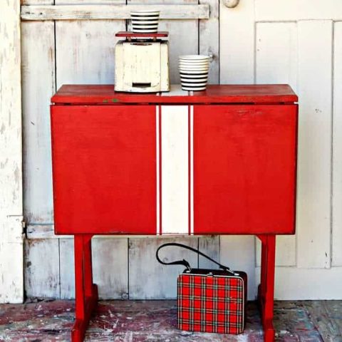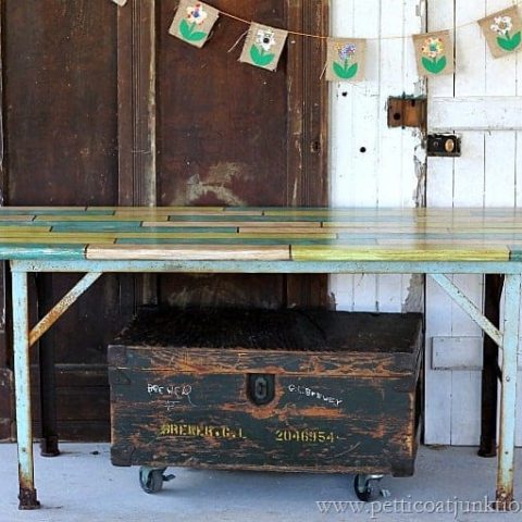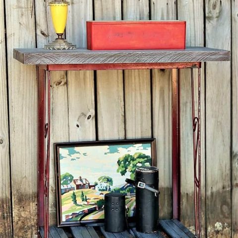 I bet you have a table, desk, or dresser that needs updating. Try one of these ideas and send me a photo of your finished piece. Paint can be made to look weathered with the proper paint technique. The red iron base is a different-looking aquarium stand and pairing it with weathered reclaimed wood was a win. Saving old furniture pieces can be a pain because of storage problems but you can always find a use of them. Would you believe this is one solid piece of wood? Paint wood to look like individual planks. Lay stencils, lace doilies, and other intricate items on a tabletop and spray paint over them. Wavy or curvy tape looks like waves when painted on a table. Metallic furniture and decor is still popular and metallic spray paint is easy to use. Lighten dark furniture with light paint and a white wash finish. Join reclaimed furniture parts to make a special statement piece. Paint the top of a side table and white wash the wood cabinet for a stylish finish. Just paint the tabletop of a vintage table to give your furniture a modern look. It is okay to paint wood, especially if the stained finish is ugly or marred. Are grain stripes still in style? I think so and the contrast of white and red is so fun. Using an aquarium base to make a table is genius. Use reclaimed wood to make a unique tabletop.How to Create Unique Tabletops - 30 Ideas