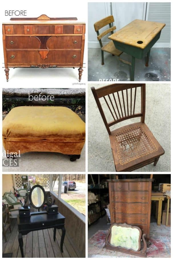 What do you guys think? Leave me a note and take the Furniture Fixer Upper Tour by clicking the pink text links below the “before” photo collage.