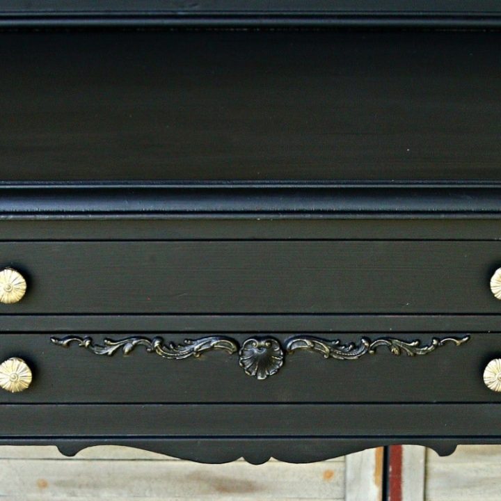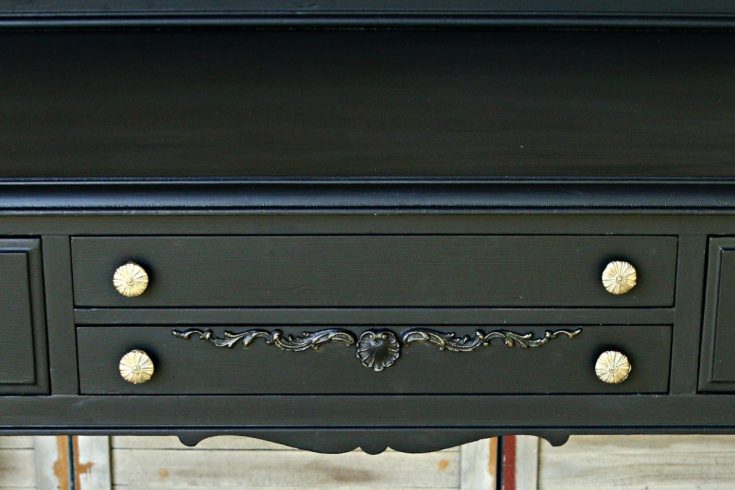 This writing desk has such timeless style. Giving it a sleek black finish with gold accents was the perfect way to bring it back to life.