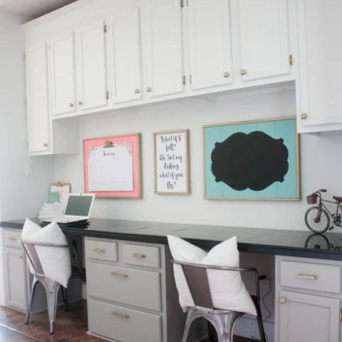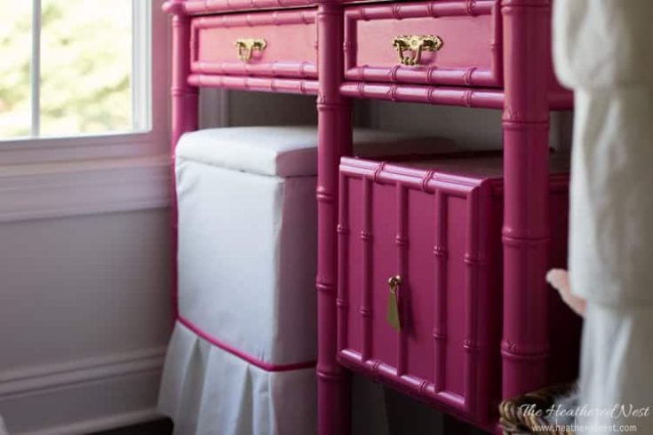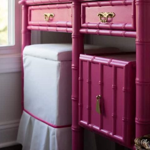 Heather from Heathered Nest painted an old bamboo desk with a pretty in pink paint color for her daughter. It is bright, cheerful and unique, just perfect for a teen's home office.