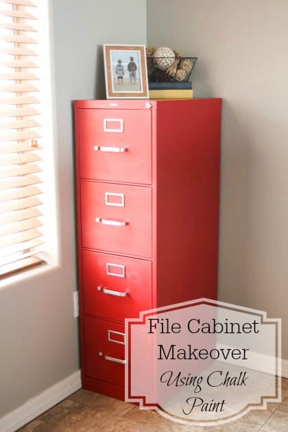 Brittany from Pretty Handy Girl took an old dull beige office file cabinet and gave it a quick and super affordable makeover with a fresh coat of pretty coral paint. It's amazing to see the before and after of this beauty!