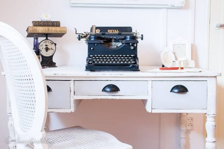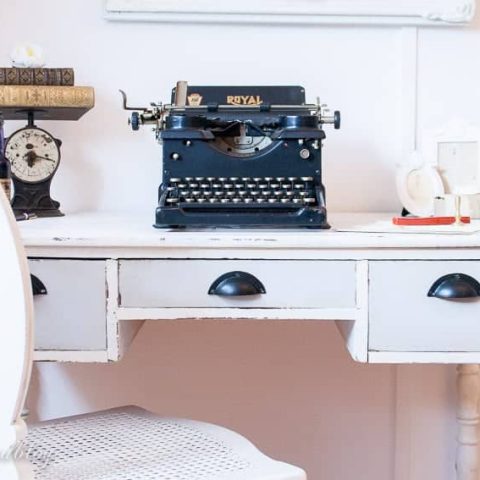 This painted antique desk is full of beautiful details. It took a bit of elbow grease to bring out its full potential, but the end result was absolutely worth it!