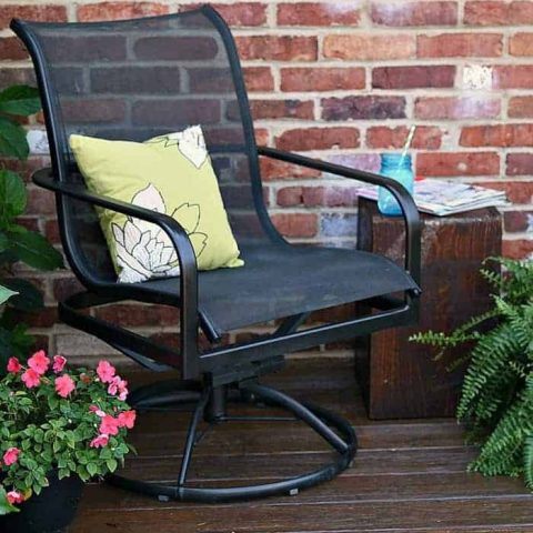Revitalize your outdoor living area with eye-catching spray paint updates on mesh metal patio furniture. Classic black is a simple way to get a slick and streamlined look that goes with any style decor.