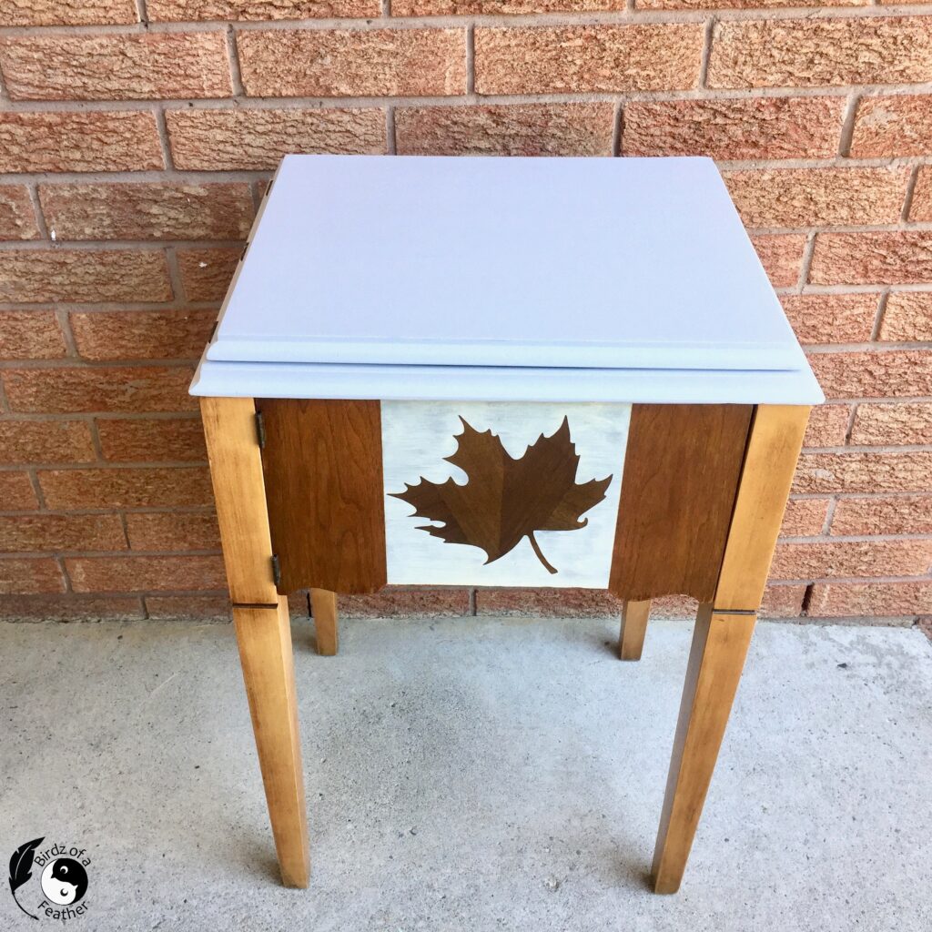 Create a unique drink station that is perfect for entertaining friends and family throughout the summer, and ideal for celebrating Canada Day! Featuring a maple leaf design, this versatile upcycled piece can be used both indoors and outdoors all year round.
