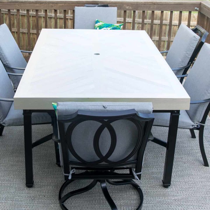 After a glass patio table accidentally flipped over and broke the glass, Wendy from At Lane and High completely refinished the table and made a new table top from scratch. I love the different colors in the wood!
