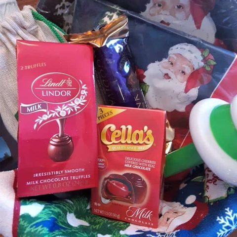 Filled gift mugs are always fun. Select good chocolate candy to add to the mug and other favorite items.
