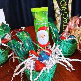 Those Moscow Mule Mugs sure are pretty and they look great when filled with decadent candy and wrapped in clear cellophane.