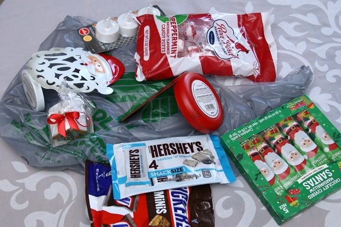For the Dollar Tree gift bags I’m featuring today, I went into the store with an open mind and found some cute candleholders. A couple were Christmas-themed, and one can be displayed year-round.