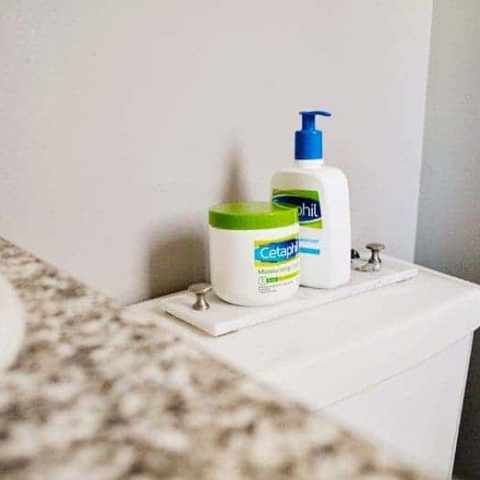 This DIY marble bathroom tray was inspired by one spotted online for a crazy high price. What is a DIY'er to do? Make one for a fraction of the cost!