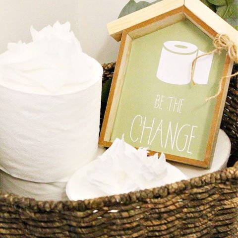 We all love a good dollar store makeover. Learn how to make simple farmhouse signs for your bathroom using these cute free printable inserts.