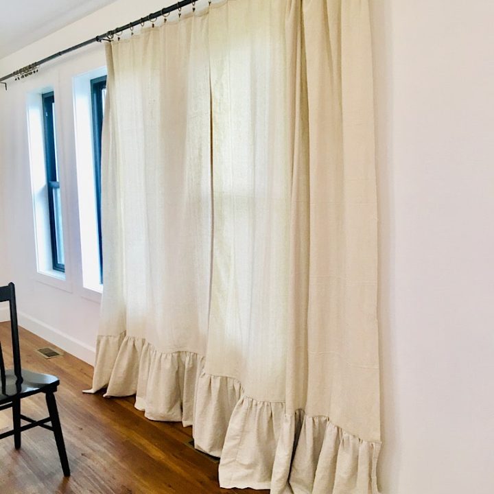 Revamp your living room with DIY drop cloth curtains that bring in texture, elegance, and functionality—all at an affordable price! Learn how to sew these farmhouse-style drop cloth curtains featuring a ruffled hem for less than $50.