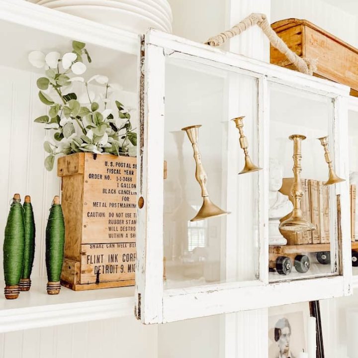 Learn how to repurpose vintage windows and brass candlesticks into a unique décor piece that brings charm and character to any room.