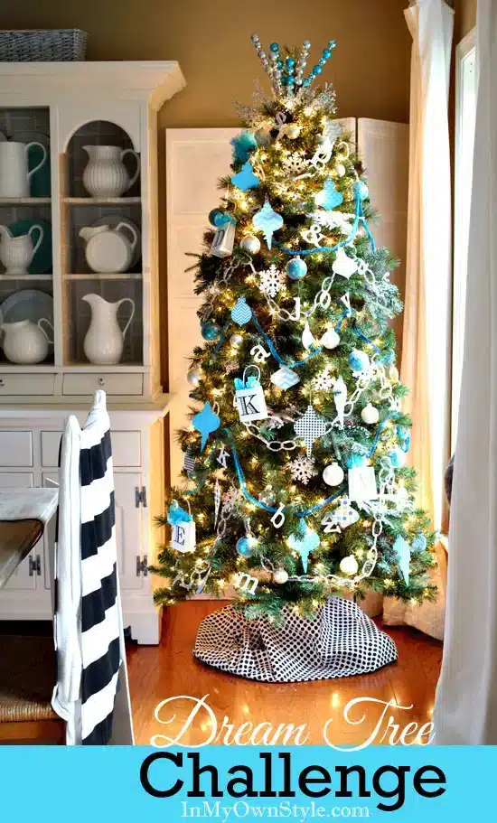 Diane from In My Own Style went with a turquoise color scheme with lots of handmade Christmas ornaments for and plenty of sparkle!