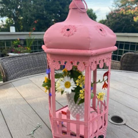 Suzanne from Shop at Blu took an old rusty metal garden lantern and updated it with a pop of bold color! This colorful piece makes a statement wherever you place it!