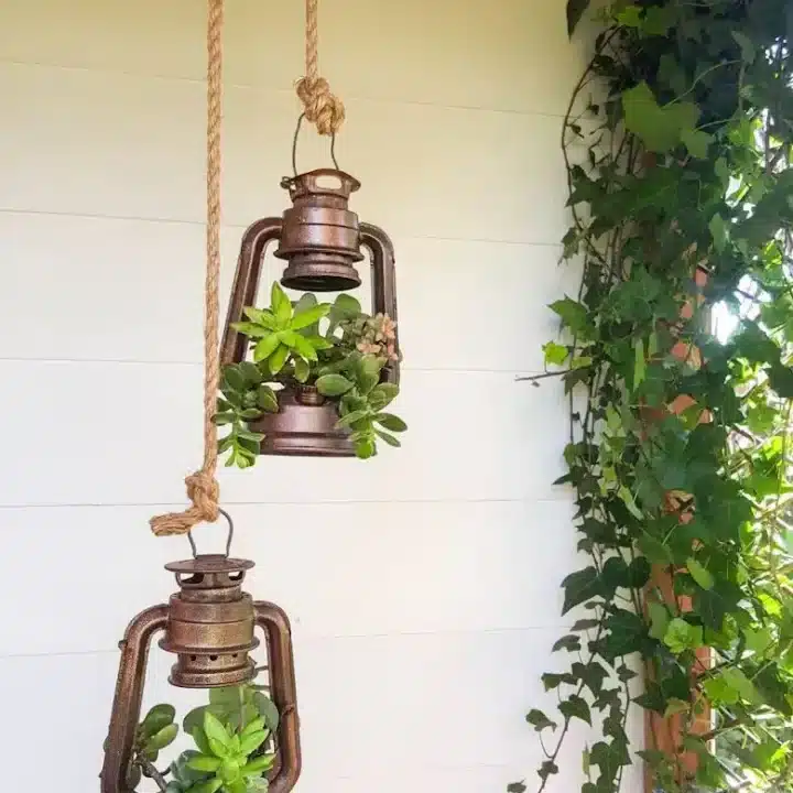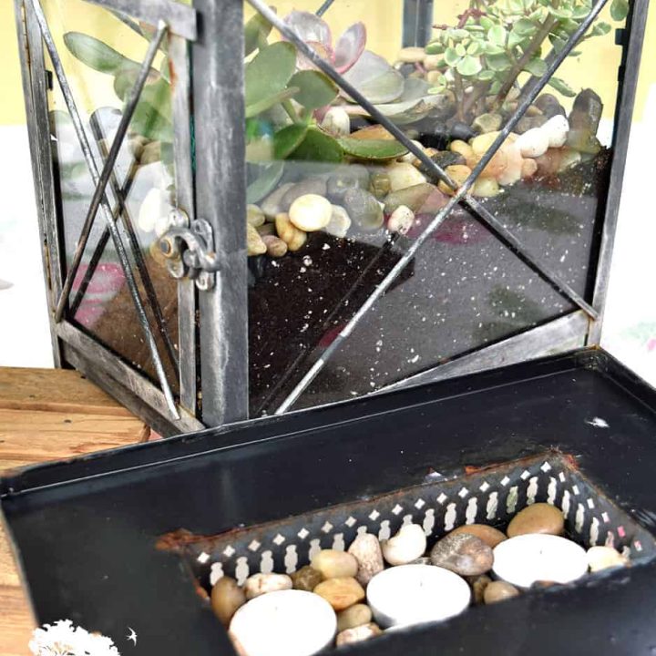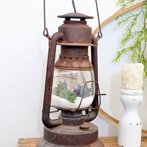 Bring life to any room with a repurposed lantern planter featuring succulents. This planter can be used indoors or out. It's a simple way to add a bit of elegance to your space.