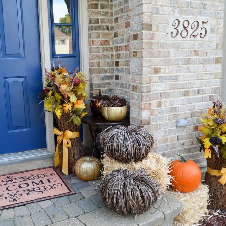 Your front entry is the first thing guests will see when they enter your home. Make it extra warm and welcoming for fall with grapevine pumpkins, hay stacks and fall foliage.