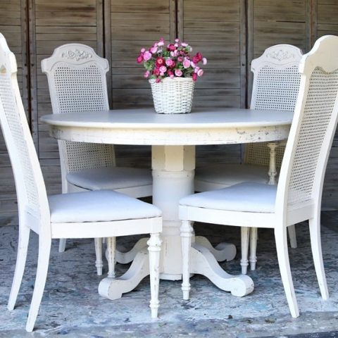 Here is a full step-by-step tutorial on how to re-cover chair seats with drop cloth. This is much easier than you think to accomplish. Plus, drop cloth is super cheap so you are not out a lot of money if you are not happy with how it turns out.