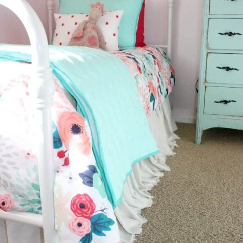 Here's a quick and fun guide on how to make a whimsical and budget-friendly no-sew drop cloth bed skirt. You can layer these with other skirts to get a unique look.