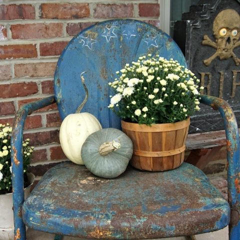 Autumn is my favorite, and decorating the porch with pumpkins, mums, and charming old rusty treasures is my thing.