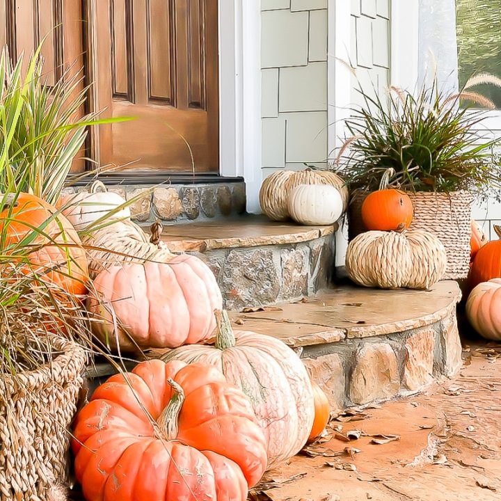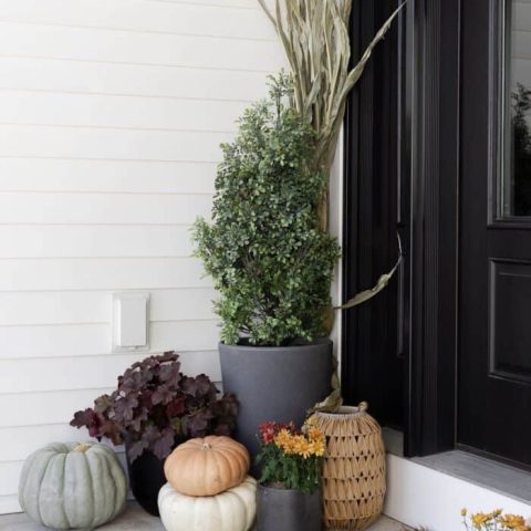 This simple modern neutral fall porch came together with just a few pumpkins, plants, and things from around the house.
