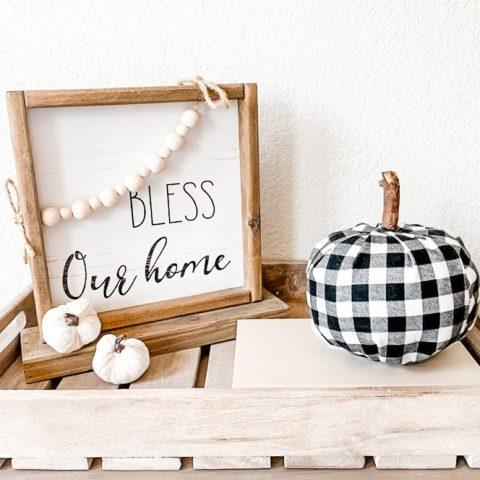 Learn how to create a simple white pumpkin centerpiece. All it takes is arranging a few pumpkins and some greenery in a tray—honestly, it’s something anyone can accomplish!