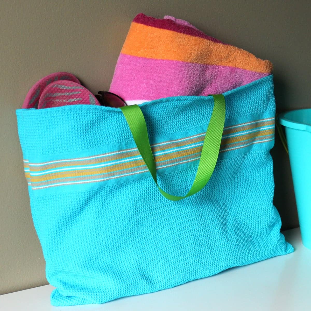This bright and cheery IKEA Bleksopp dish towel at Ikea makes the best tote bag and it is super easy to make!