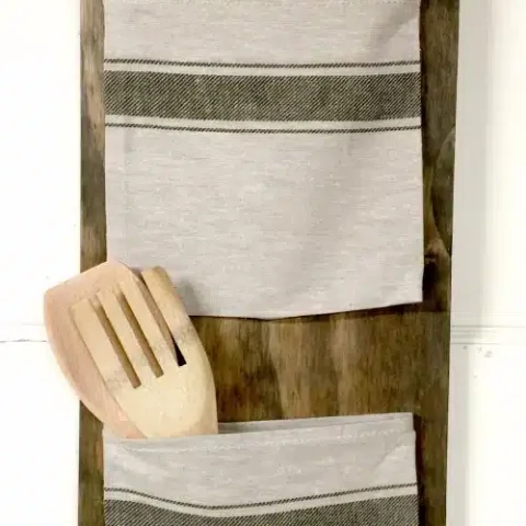 Susan from Homeroad found scrap wood on the side of the road and used it to make a really cool bag organizer. She repurposed Vardagen napkins from IKEA. The grain sack style with the wood pig is perfect for a farmhouse kitchen.
