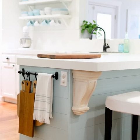 Wood cutting boards are not only useful, they are also decorative. Instead of keeping them hidden in your kitchen cabinets, hang them from an IKEA curtain rod. It looks great attached to a kitchen island.
