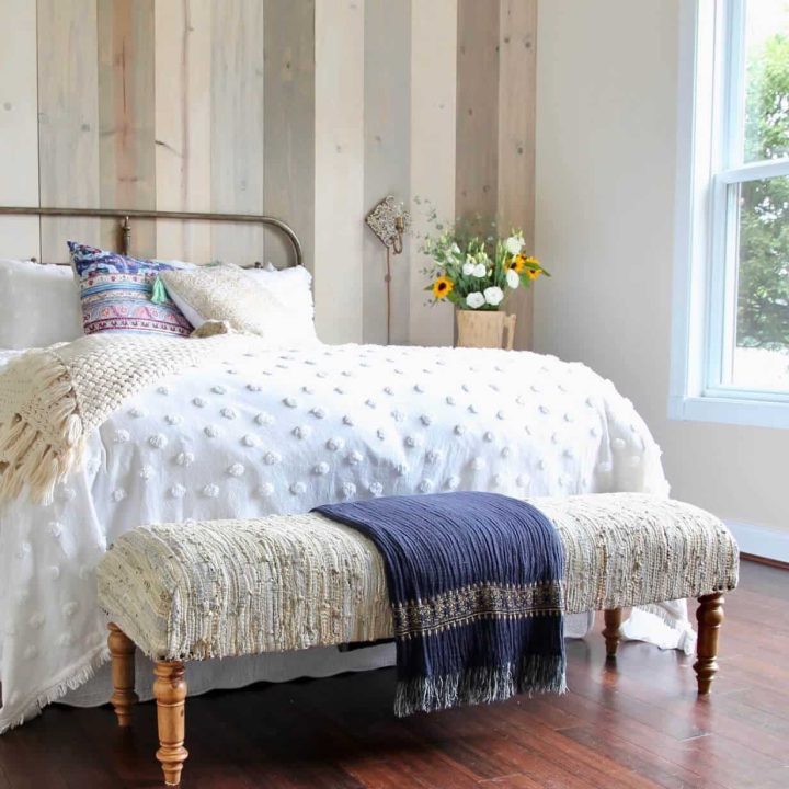 Create a DIY farmhouse style rustic wood flag to add a cozy, patriotic touch to your home décor with this easy, charming project.