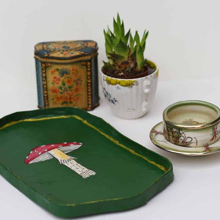 Learn how to make a charming paper mache tray featuring a whimsical mushroom design—perfect for adding a playful, handmade touch to your home decor.
