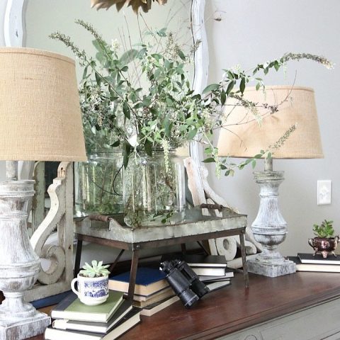 Debbie from Refresh Restyle was not feeling the combo of dark mirror, dark lamps and light buffet, so she changed it with paint! Paint is one of the easiest and affordable ways to update home decor pieces.