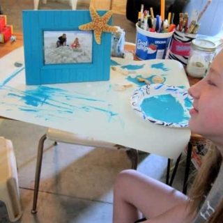 Miss Sofi, my 9 year old granddaughter, worked on this DIY frame project with a bit of paint and a large starfish perfect to display a beach vacation photo.