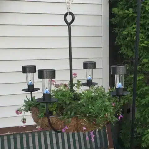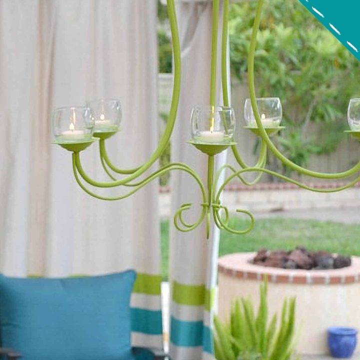 Candles are a great way to add ambiance to any space, especially at night. Think about adding a hanging candle holder to your backyard, porch or patio with a repurposed chandelier.