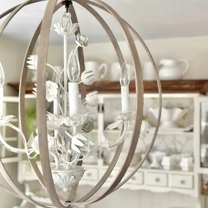 Stephanie from Celebrated Nest shares a great tutorial on how to revamp a small chandelier into a stunning light fixture using a DIY farmhouse style orb.