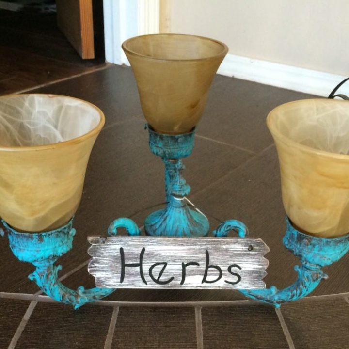 You don't want to miss this repurposed light fixture planter. The blue patina was achieved with paint. Get all the details!