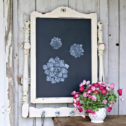 This large chalkboard was created from an old furniture mirror frame. The vintage wood frame was a junk shop find, and the whole project is super simple to make.