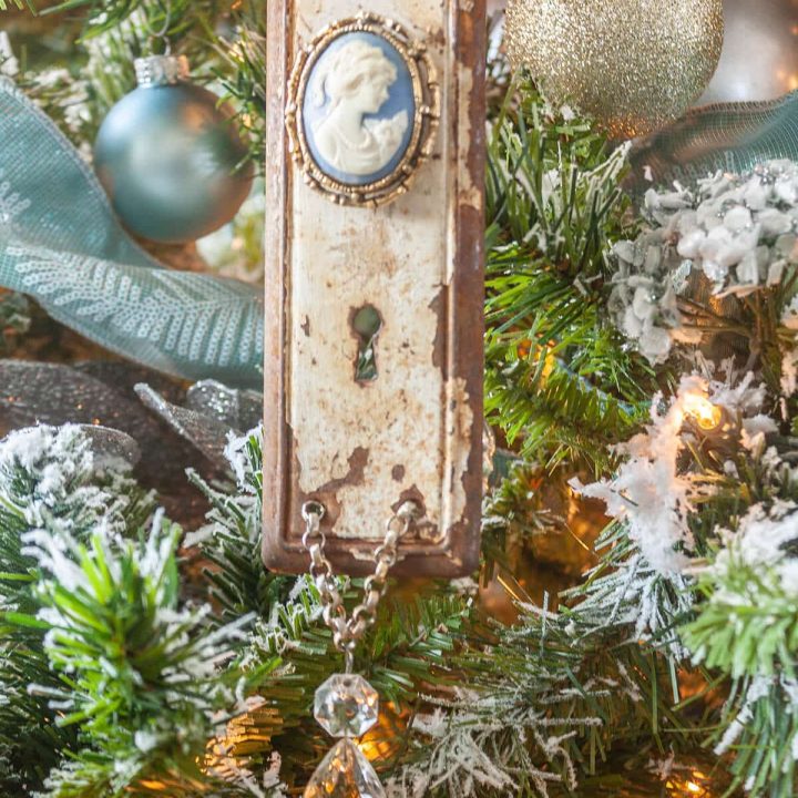 Learn how to repurpose old jewelry and door knobs into lovely Christmas ornaments with a vintage look. These would make a great family gift idea too.