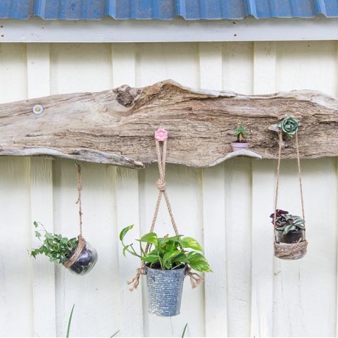 This driftwood hanging planter is a beautiful way to display greenery with a natural, rustic vibe. It only cost $15 in plants to bring the whole look together!