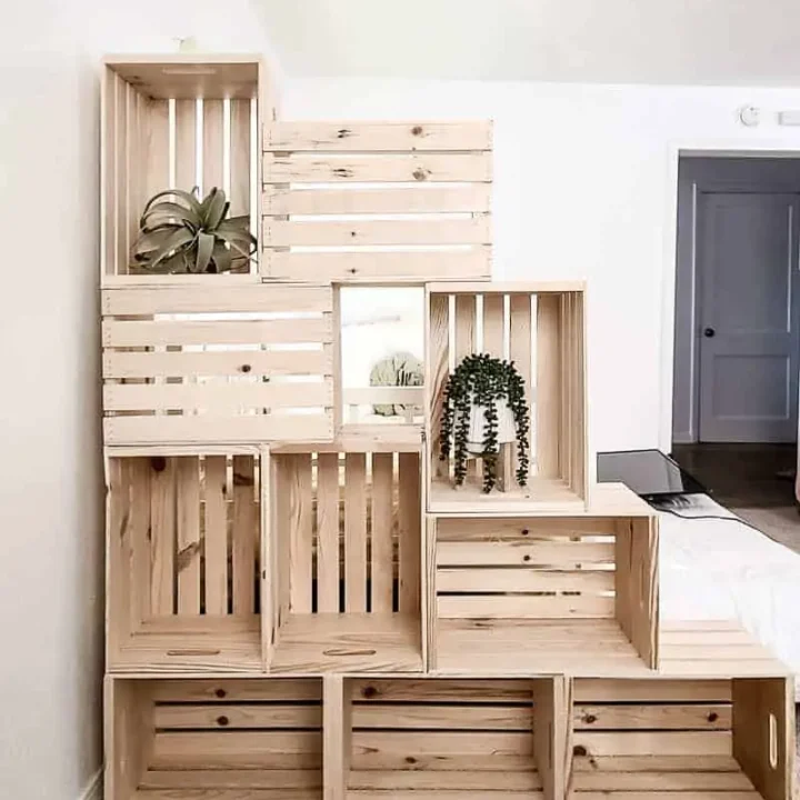 Learn how to create a stunning DIY crate shelf statement wall! This project turns affordable wooden crates into a stylish, eye-catching display perfect for any room.