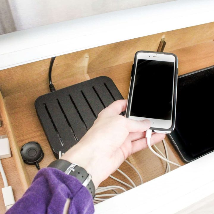 Learn how to make your own do-it-yourself charging station in the kitchen. It's a great way to tidy up the cables and gadgets by consolidating them all in one designated area.