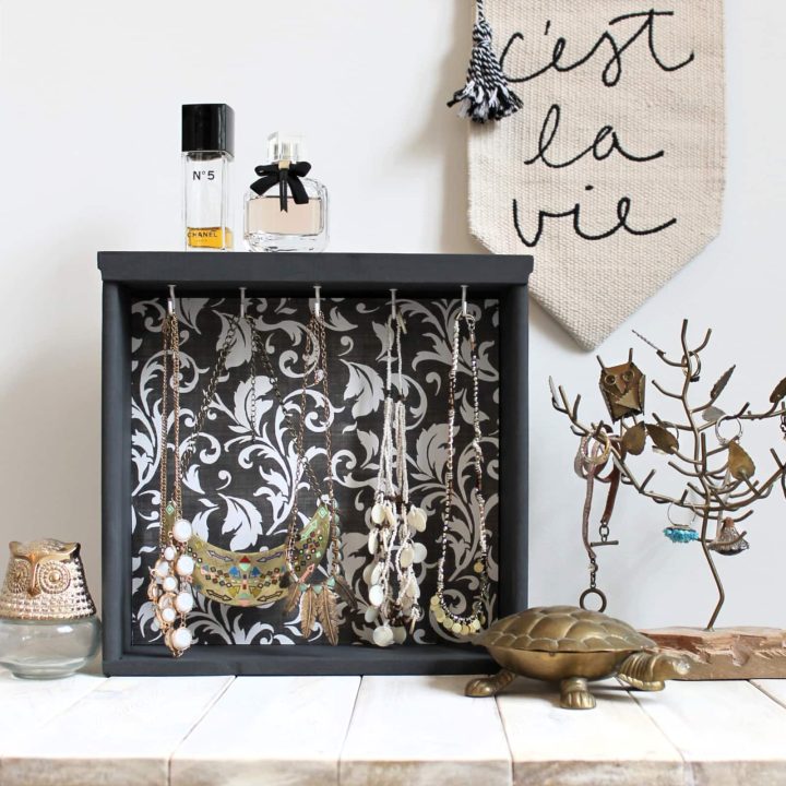 This modern jewelry holder is easy to make and keeps all your jewelry neatly organized in one stylish spot. Such a great way to organize your jewelry and keep your favorites within easy reach.