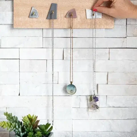 Jane from Sustain My Craft Habit crafted a stunning modern jewelry display using faux marble resin paired with a sleek piece of natural wood. It's like a piece of art that is also functional!