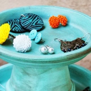 Lindsay from Artsy Fartsy MamaI put together a beautiful jewelry stand that holds everything—plus has room to grow! It can hold earrings, rings, bracelets, and small necklaces. Best of all, this DIY project cost less than $10.