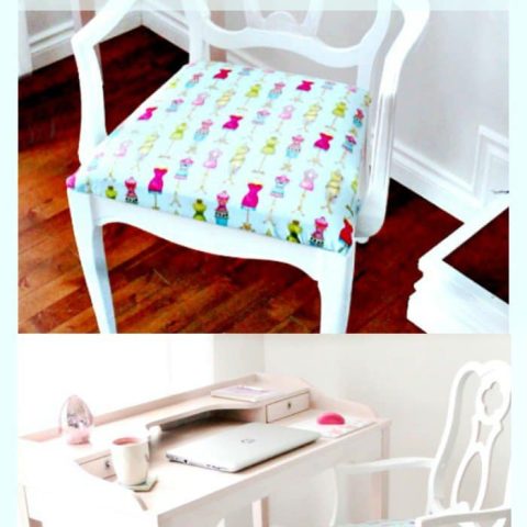 Leanna from Pretty DIY Home updated a French Provincial style chair with paint and fabric perfect for a sewing room!