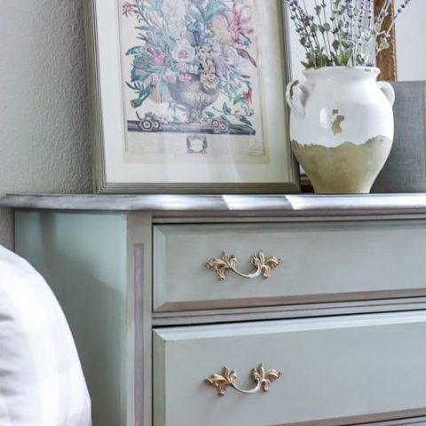 Fusion Mineral Paint was used on this painted dresser. The soft paint color and handles give a lot of visual interest and depth to this lovely piece.
