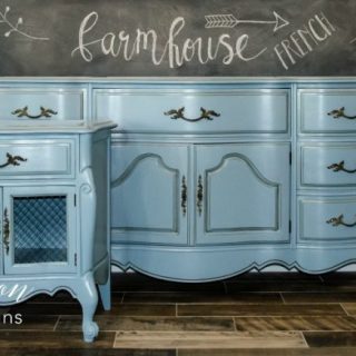 Paint is the easiest way to update any piece of furniture. This soft and serene blue paint color is just gorgeous on this French farmhouse style dresser.