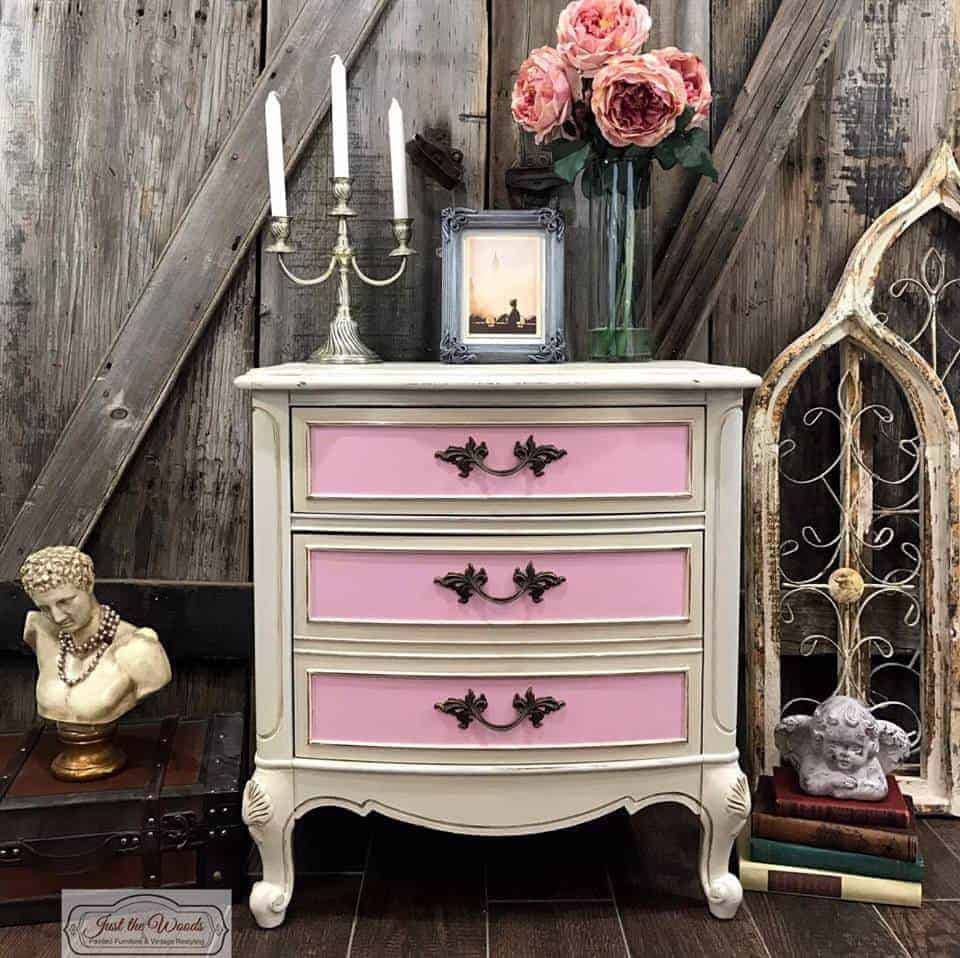 Get inspired by this pretty in pink and cream chest of drawers. The colors are just perfect for this design style.