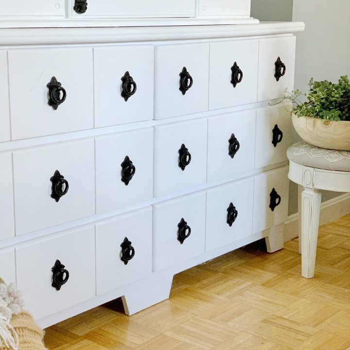 You know how much I love to add detail to tired pieces of furniture. This bedroom furniture makeover looks like a custom piece and is definitely a showstopper!