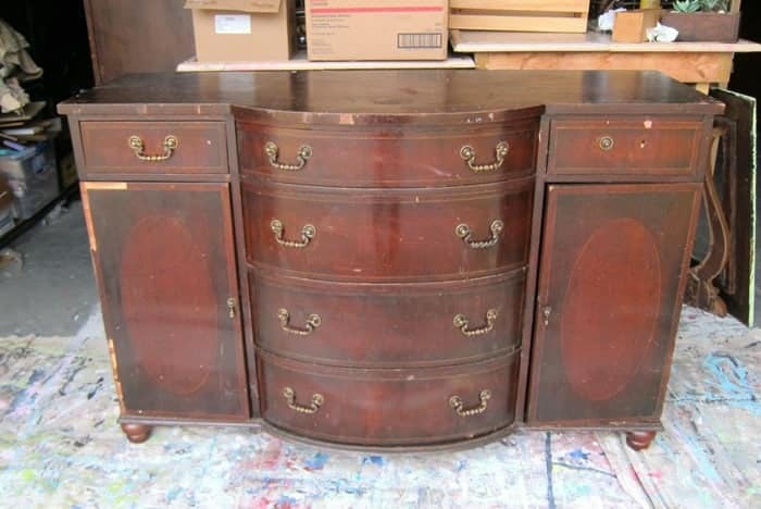 The JTS and I made a few repairs and cleaned up the sideboard before starting the paint job. I ran into more repair issues during the painting. If you missed the post with all the prep work you can see it here.