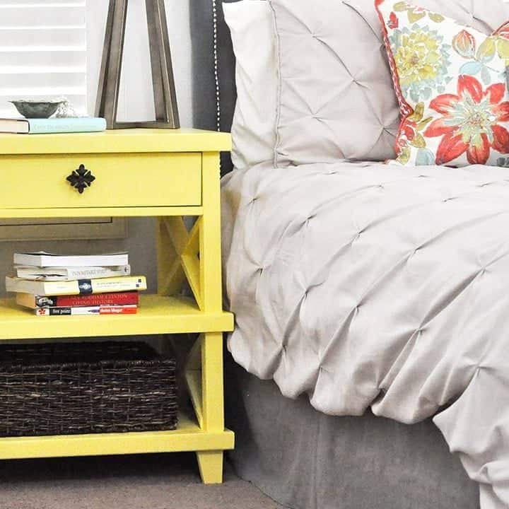 Consider building your own nightstand with the included build plans from Anikas DIY Life. Get the details on the sunshine yellow color.